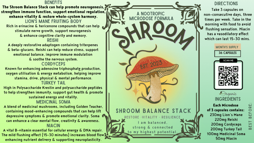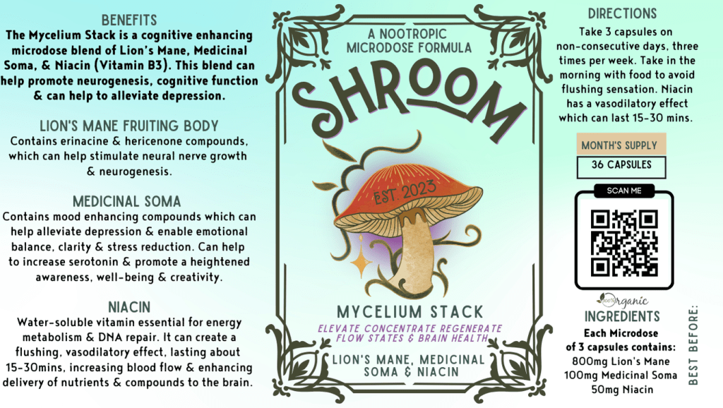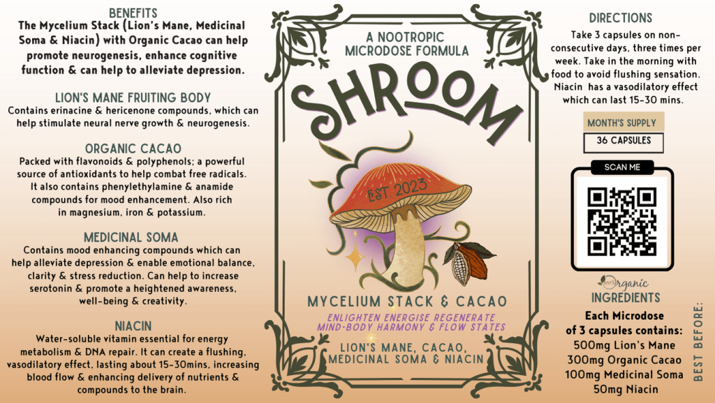 - The synergistic effects of medicinal Soma, Lion’s Mane, and niacin can lead to enhanced mental clarity and a balanced mood. Niacin helps in the absorption of the compounds, ensuring you get the maximum benefits.